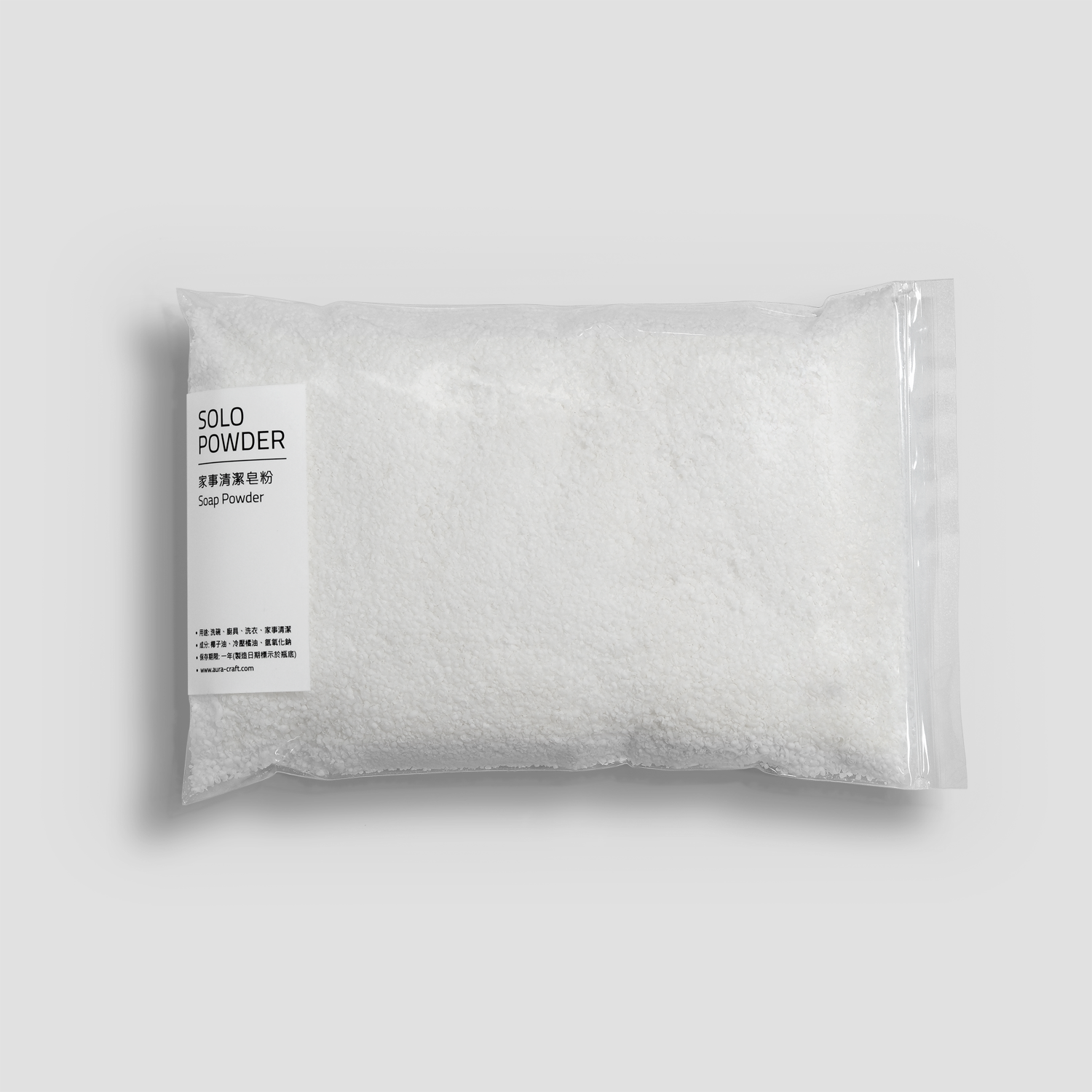 SOLO Powder 是SOLO的延伸皂粉產品,以冷製皂手工刨削成細粉狀,可以快速溶解於常溫水中,用於餐具、洗衣、家事清潔都相當便利,可直接灑在布料、刷子、菜瓜布上加水搓揉快速起泡刷洗物品表面,也能直接將適量皂粉倒入洗衣機的皂盒內機洗衣物。