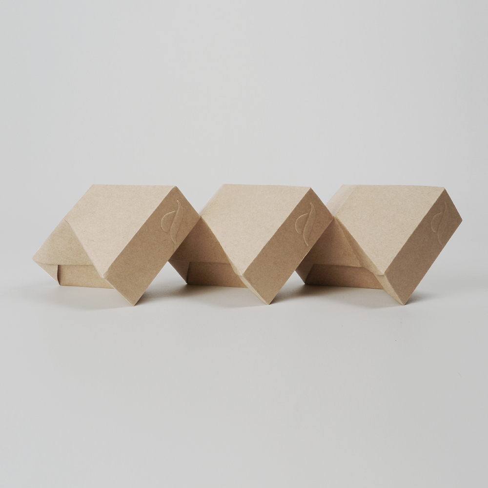 以日式雜貨感的本色牛皮紙做包裝,忠實呈現皂體的原始風貌,讓人一抓在手上便能對這獨特的設計意圖了然於心。