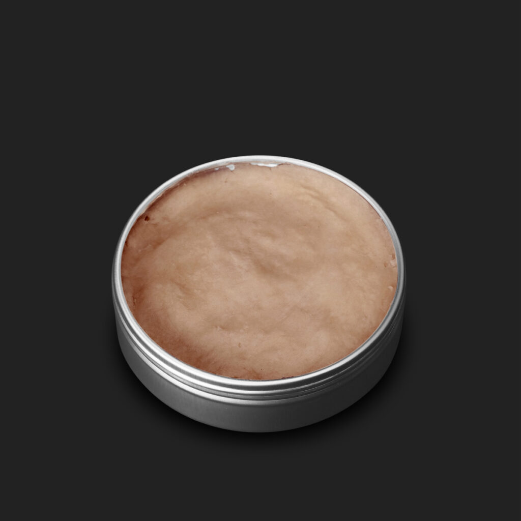 其實一般刮鬍皂品牌多半在打好皂後,直接把溫熱未固化的皂糊倒進包裝盒內,此舉雖然較為省事方便,但皂在固化後會進入熟成的階段,而熟成過程中最好讓皂體表面盡可能接觸空氣,如果填充到包裝盒內,那皂體只剩下頂面能透氣,則熟成的速度也較慢且不均整,也就造成一般常見刮鬍皂表面與本體的質感/顏色/表現力不對等的狀況。
